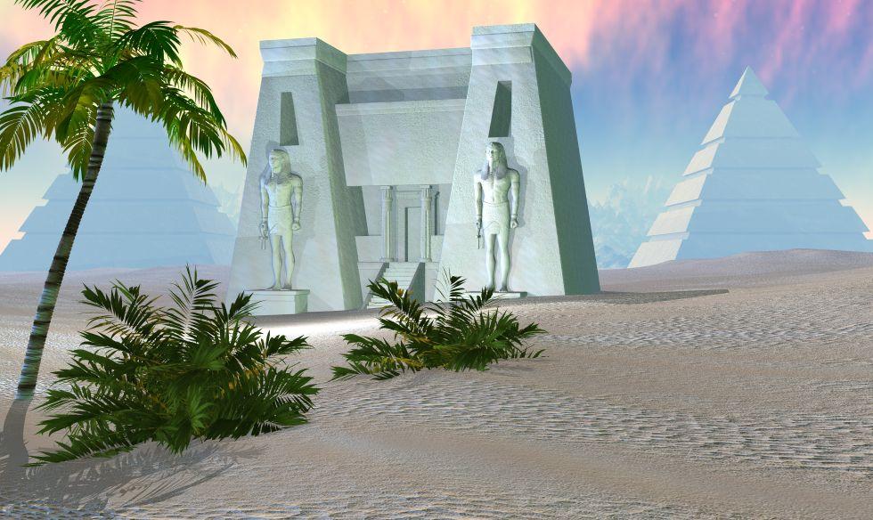 My first entry : ancient Egypt. Free models, the temple is from Gadu, the pyramid from Thandaluz, Bryce vegetation (I think)