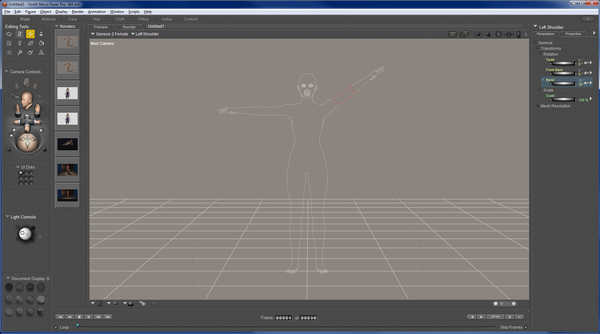 So again I exited Poser. I RAR'd up the DSON folders so Poser couldn't run it. When i restarted poser and opened the G2F scene, it opened. But G2F is nothing but an outline. (see attachment 2) No figure mesh. I can pose her by moving the limbs and spining dials also affect morphs. But she won't render. But, the library works perfectly. So its something DSON is doing (or not doing).