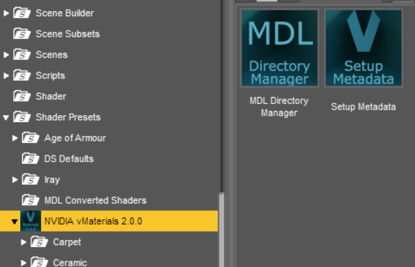 What is meant by install NVIDIA vMaterials 2.0.0 Shader Presets for DS?  I downloaded the zip file and unpacked it.  Then I ran the scripts from there.  It all seemed to go as planned but there are no new materials.  Any help would be appreciated.