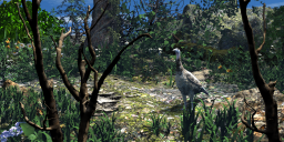 Terrain material is from tilable terrains, the trees are standard, bird, butterflies and flowers are freebies.