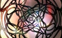The object was made in Wings3D, it has some transparency and is in the worldcentre. Around it a partly transparent sphere with a bit of bump by a hatcher. Light and colour by an HDRI in the worldcentre. In front of the camera the GWL (gigantic wide-angle fisheye lens), angle of view horizontal 174° and vertical 124° with the camera FOV at 68°.