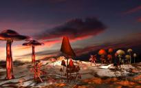 I used my previous space eggs scene to change it into a firy abstract (maybe I looked at those mushrooms of adbc too much!). Then I started playing with the TE, thanks to Horo's explanations, and made a couple of terrains.