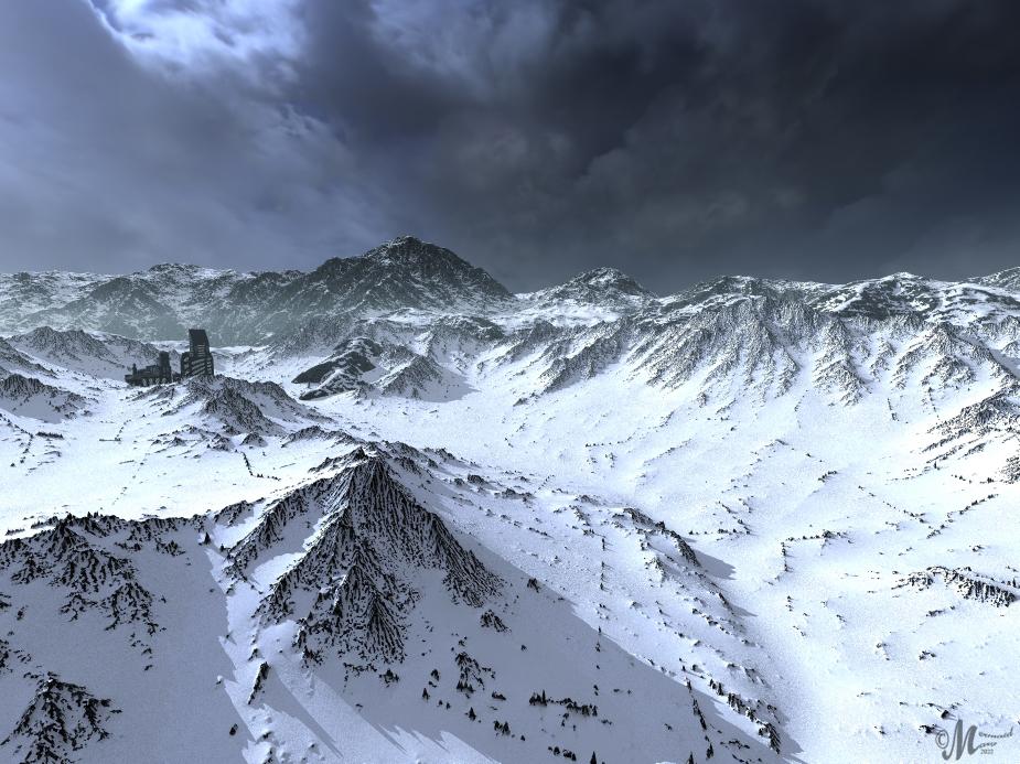 spuddy : thank you. The corrected image is indeed better. The snow terrain does not really look like snow (to me), nice render though.