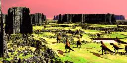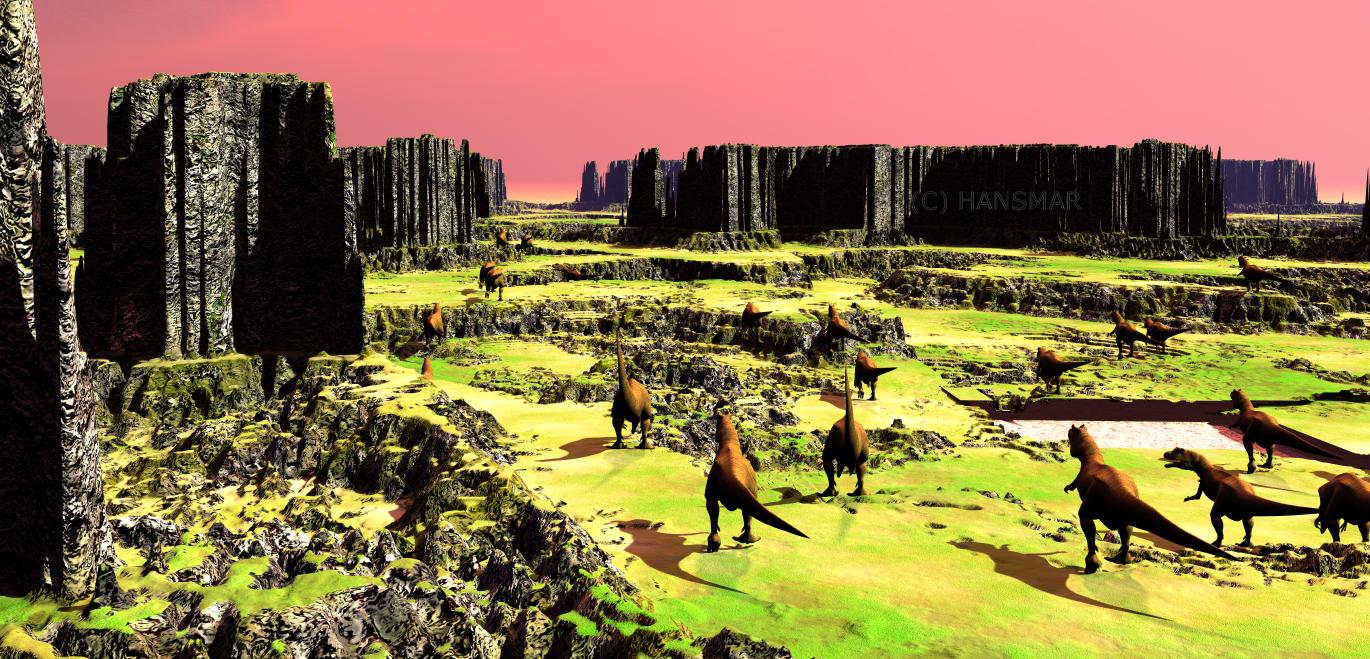 Hansmar - thank you. Six interesting terrains. The first has a nice sky, the second seems to have some lava flows, the third has an alien terrain and the dinos fit well into this scene.