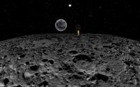 The terrains were made from DEMs (Digital Elevation Map) of the Moon and given a de-saturated material from High Resolution Terrains 1. The sun is from the Space Construction Kit, the Earth atmosphere as well and in front of the camera is the EWL from Lenses and Filters. The Apollo Lunar Module is from the "NASA 3D Resources" Website. North is right, the region is about 20° south. There was never an Apollo.