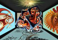 2 abstracts, different HDRI skies and materials used on the sphere, also used a posterization filter on both.