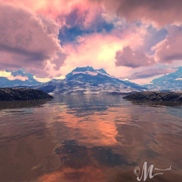 mermaid - very nice scene, I like how the clouds make the mountain the focus.