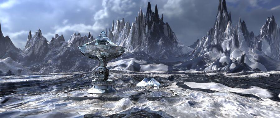 Bryce terrains, shadowless hdri for the sky, the object : Gendragon's satelite base.