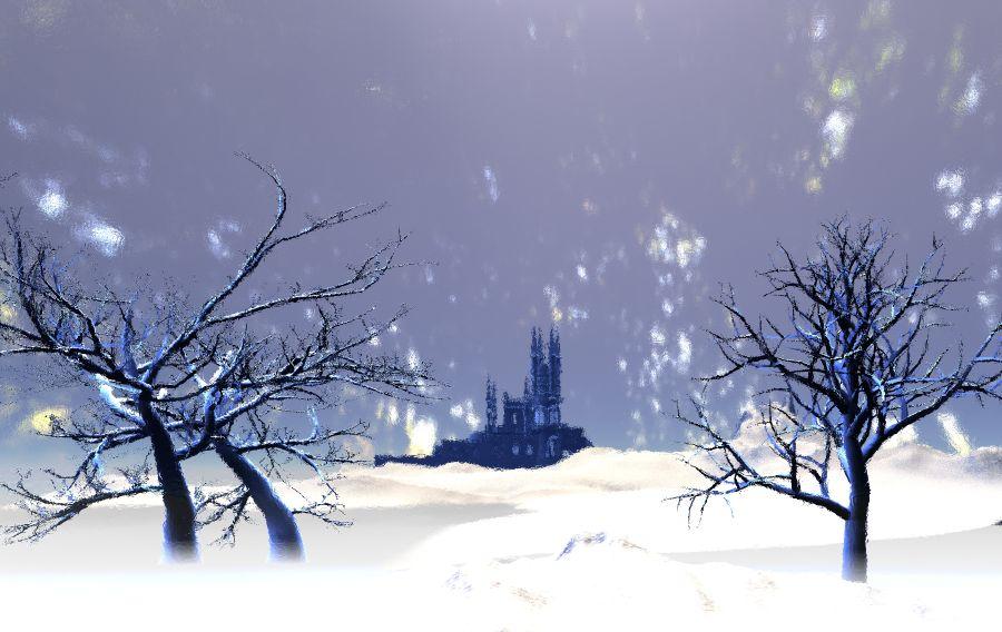 - A beautiful snowscape and nice composition with that castle and the trees.