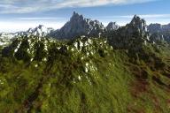 Double stacked terrains, self made, with materials from High Resolution Terrains ". Sky and ambient light by the WarmAndCloudy HDRI from HDRI Enhanced Skies, the balloon from Daz 3D with my own material.