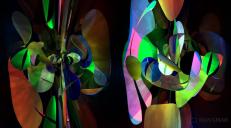 The camera was placed differently, the brightness of the spot lights adjusted and negative light from inside by an HDRI to enhance the contrast. I have a love-hate with abstracts. Changing anything a bit and you get something completely different and it finally gets difficult to decide which variation one should keep.