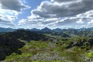 The terrain was self made and given a material from Vegetation. Sky by the Cloudsphere9 and the ambient light by the inherent SkySC9 HDRI from the Sky Toolbox.
