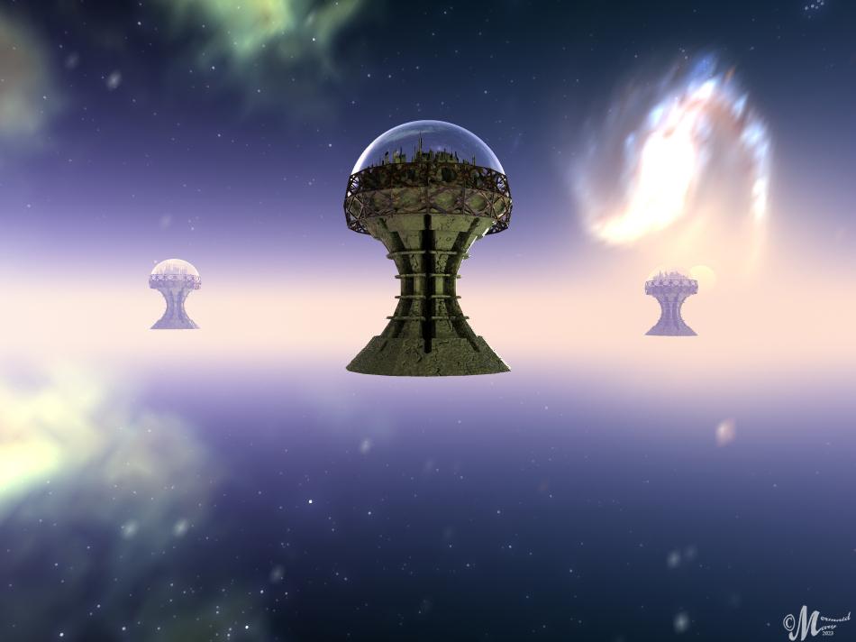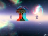 A simple scene using an Hdri and the pod from Deep Space 2. I couldn’t resist doing an anaglyph.