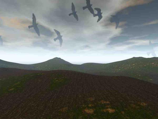 @CTippetts - I have yet to experiment with other (booleaned) objects to map the flock of birds around. If you use 2D-Faces, experiment with rotating the face. This way you can get some feel of depth, some birds seem nearer, some farther away.