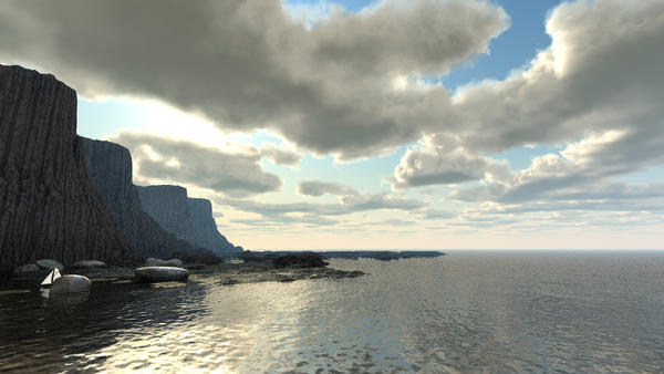 Another attempt at Bryce 7.1 Pro - About the ambient shoreline effect for Art Wade - by David Brinnen Personally I like the foam effect of my1st attempt which I posted a few days ago, post #528