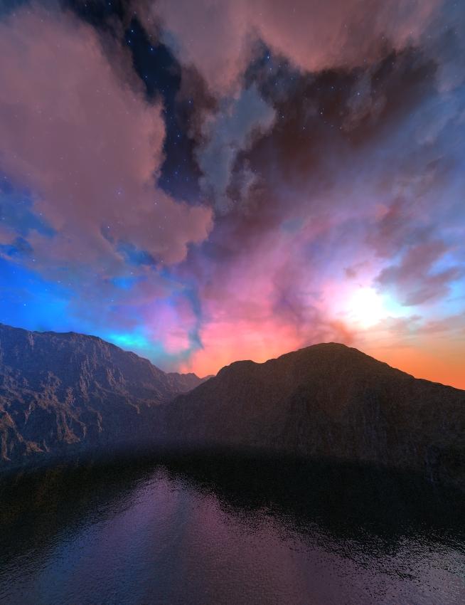 Here are a few cloud experiments I've been playing with using the a couple of different "Fantastic Skies" settings from David and Horo's product of the same name.
