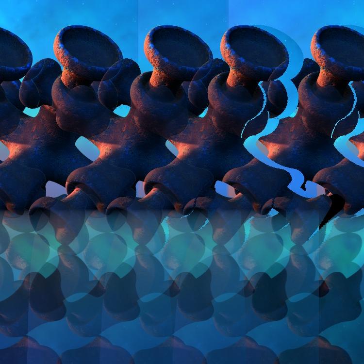 I'm hoping the forum is a bit more stable now and that I can upoad some of my recent stuff. A lot of it has been generated in Adobe Illustrator because I've been doing a lot of Escher style tesellated repeat patterns for a collection of cloth I'm having printed. But for every one I've made a Bryce render of samples of it (mostly to double check the step & repeat was accurate, but also to make some interesting abstract type renders).