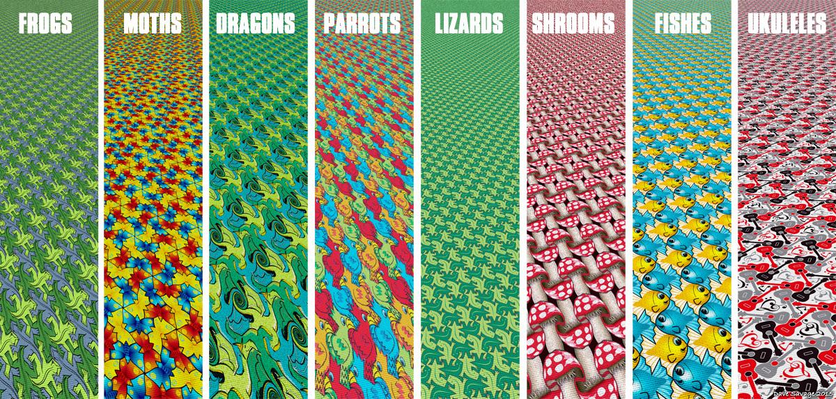 Dave, super render with the rusty sign, everything is top notch. The Escher tesselations look interesting too. Nicely presented. The "Shrooms" look almost 3D themselves.