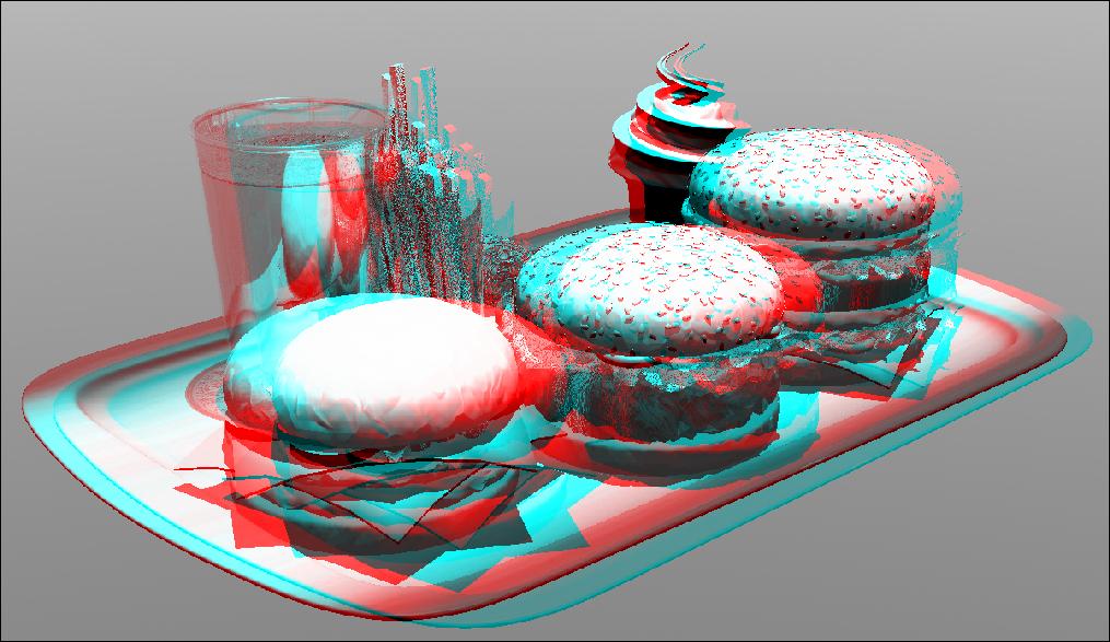 Okay, last anaglyph...just for Art's (ahem) sake wink It looks a bit pale or bland - a little like the tase of the food. Model, done by someone named 3dregenerator.
