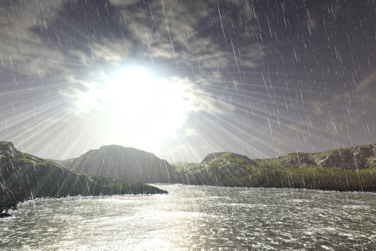 David – wow, you have sun rays and rain, the water is just awesome, beautiful render.