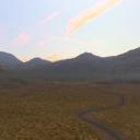 The tricky part was trying to get the terrain material to match the backdrop which I only succeeded partially. The road is not very convincing but it was a nice workout playing in the DTE.