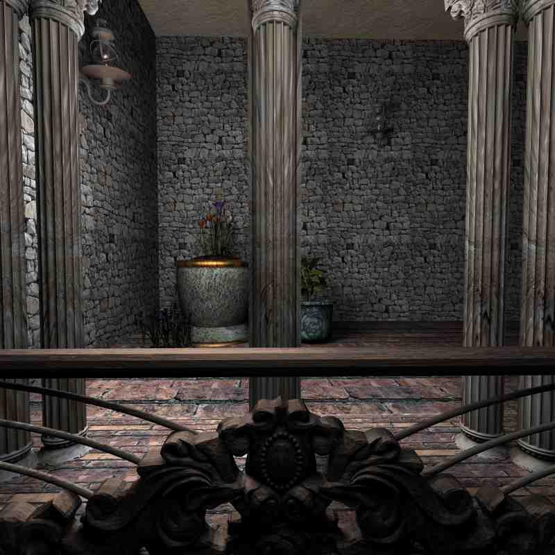 Playing with lights and textures...... I wanted a dark room representing maybe a castle's patio.... Maybe it is a bit too dark.