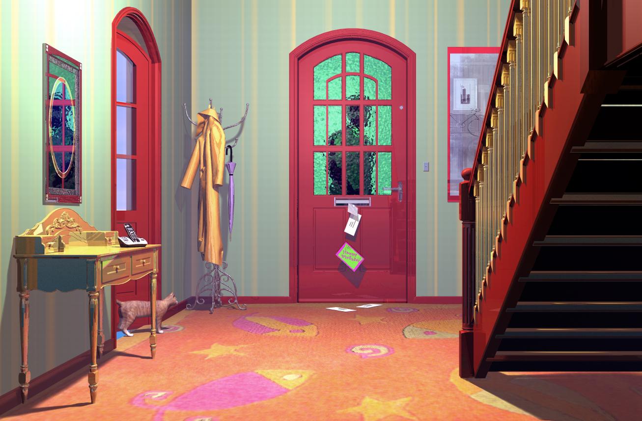 @Jamahoney: Nice scene. Great raincoat and wonderful staircase. Great idea with the silhouette. I do find that the light is maybe a bit too much (a bit harsh). I would have preferred a little darker for an indoors scene like this.