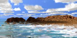 I made another landscape. In this case a coastline where I tried to get the effect of foaming water around the edges of the rocks. I used the same terrain as the landscape, but modified (higher resolution, a bit of additional noise) and slightly moved it. I think it looks nice. What do you think?