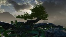 @Rembrandt, nice way to get a miniture mountian in a scene, the moss/creeper effect along the edges of the wall is a good detail as is adding a terrain for the wall itself. The table material I think might be letting you down in that I suspect it has some ambient within it which is creating a contradition between the shadow which falls on the ground under the table and the lighter shadow that falls across the leg of the table, which means it looks like the table is slightly glowing by itself. An easy test is to set global ambient colour to something dramatic like red and see what changes colour in your scene. Or if you have no need of ambient, set the global ambient to fully black. Or if you do need it for an effect (clouds or fire for example) then check through the materials that don't want to glow and set their ambient value to 0. If then the shadows look too dark. The best solution is to throw in additional lighting, or if you are careful you can set global shadow intensity to less than 100, but this can push up render times as this creates more light paths and does not add to the realism as would adding more lights.