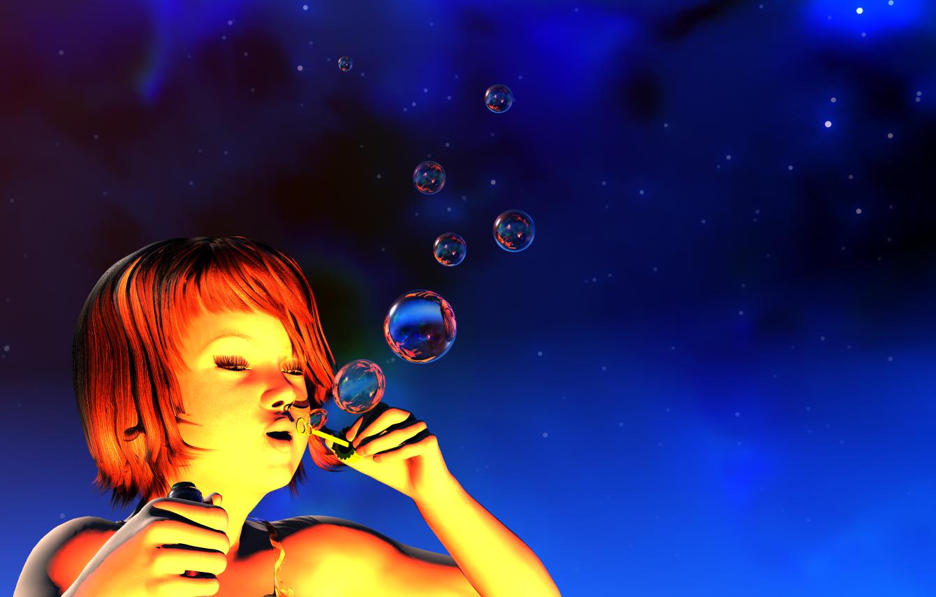 Below, a contrast of sorts - warm colours versus cold, bubbles versus stars etc., (bubbles aren't convincing enough, I know). One of Horo's and David's Fantastic skies was used. Title: Bubbles and Stars