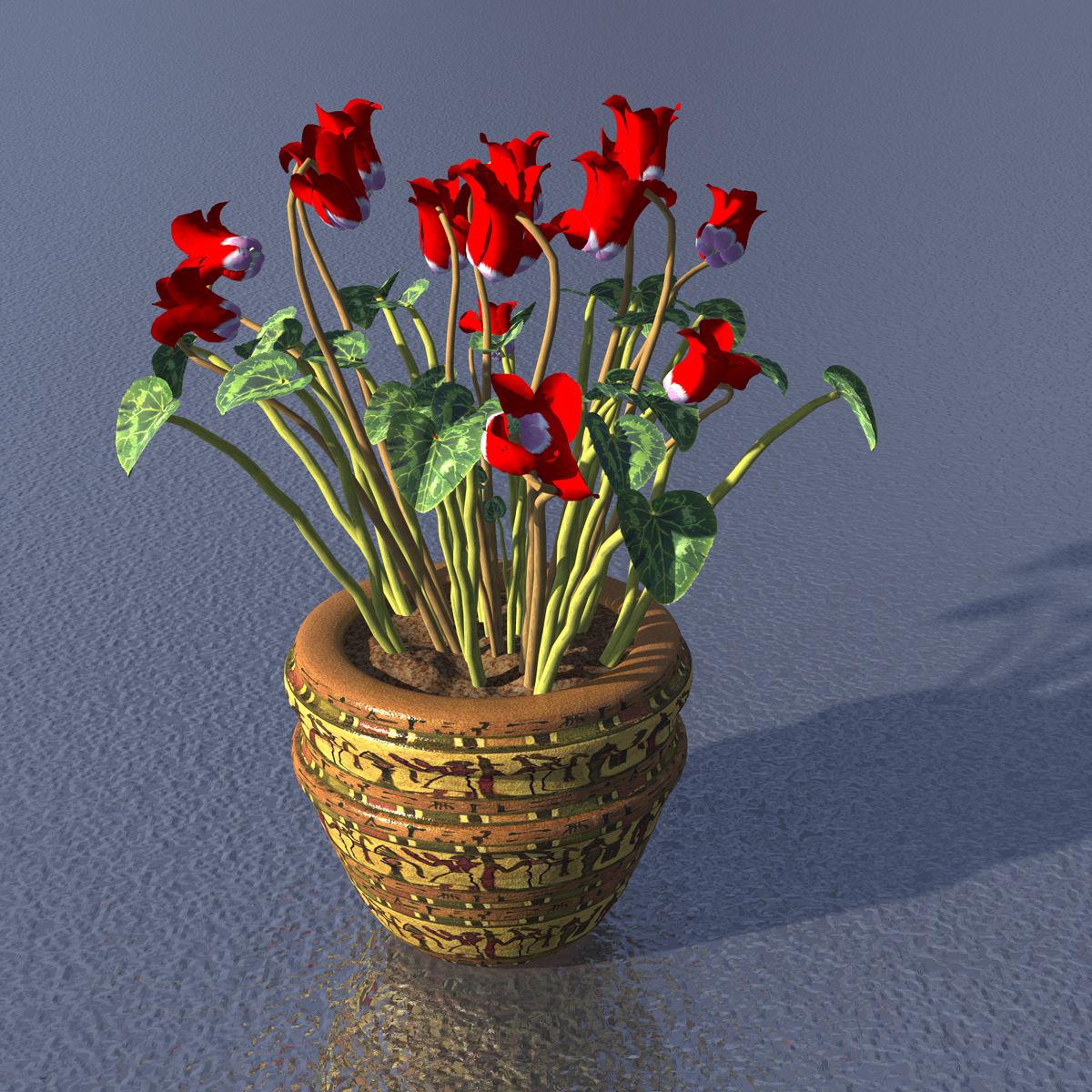I played with flowers I got from Xfrog some time age (FL05_Cyclamen_persicum_Cyclamen_2) and put it in a pot from the Vegetation set.