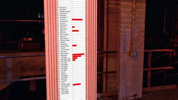 and each percussive instrument ( channel 10 ) will have 1 node per drum, only drums used in the music piece