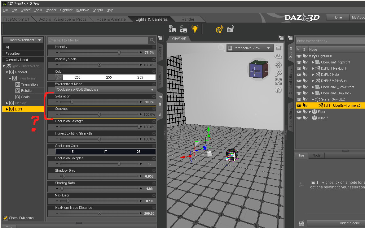 Zarcon thx for the xplanation. btw the headlamp acts like a distant light parented to camera, except with very few lighting properties to control. it doesnt turn off other lights, but will add automatically when all lights removed from scene ,depend on render settings. yup, i'm aware of that feet into floor thingy. found a tedious method just to handle such issue, daz didnt seem to improve it since 3rd version when inverse kinematic was introduced