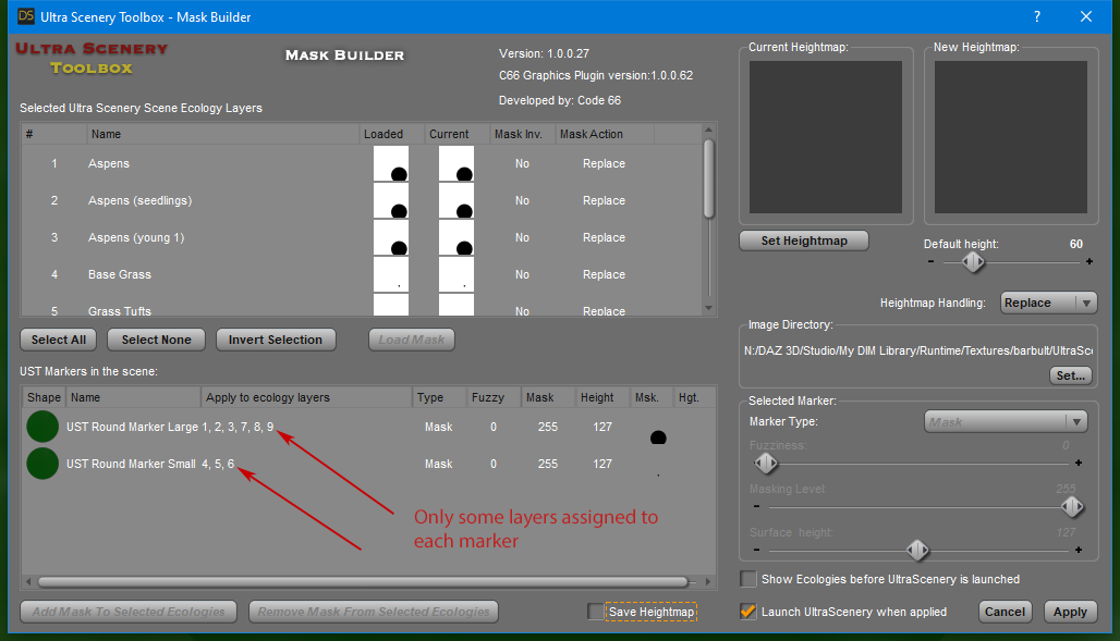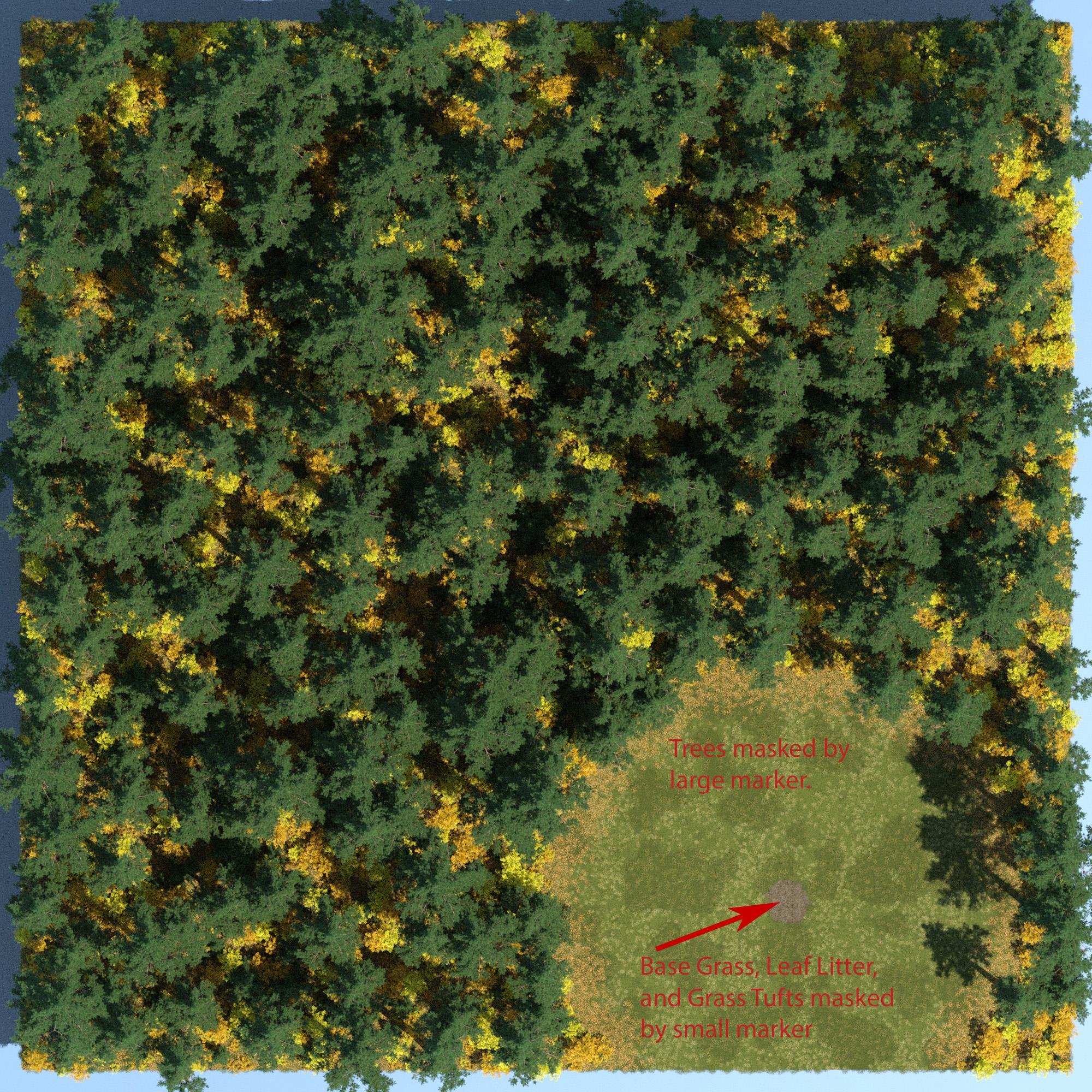@lou_harper You might not be assigning the correct layers to each marker in the UST Mask Builder. Don't assign the grass layers to the trees marker. Here is an example. You can see how I assigned all trees to the large marker and all the small stuff to the small marker. (BEFORE running UST Mask Builder, I renamed my markers in the Scene pane, to make it easier to remember which marker I intended to use for which purpose.)