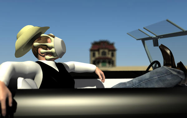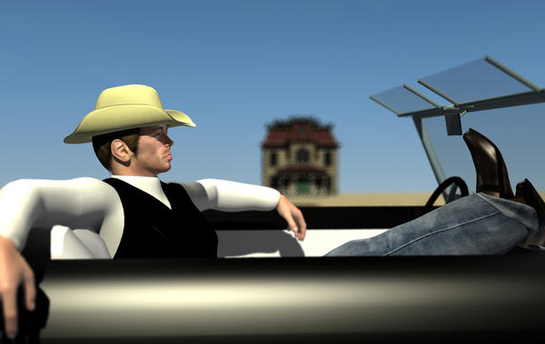 But I'm putting a spin on it. As the Beatles quote in the challenge title implies, show us somebody driving a car ... or at least behind the wheel. It's up to you what sort of car - an 1884 de dion bouton et trepardoux dos a dos, a 2007 Mercedes cl 500, a Batmobile, a Shelby AC Cobra, a Volkswagen Beetle, an AS-42 Desert Reconnaisance Car, or something else entirely. (Yes, all of those are available as free models! Now that I've listed them, feel free to surprise me with something else instead.)