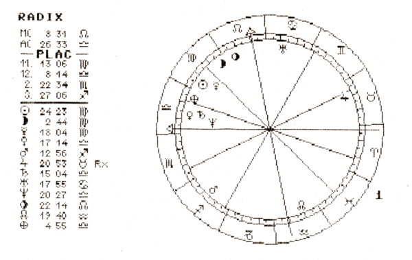Found an old printout from the astrology program, looks terrible but that was the printer resolution of those days...