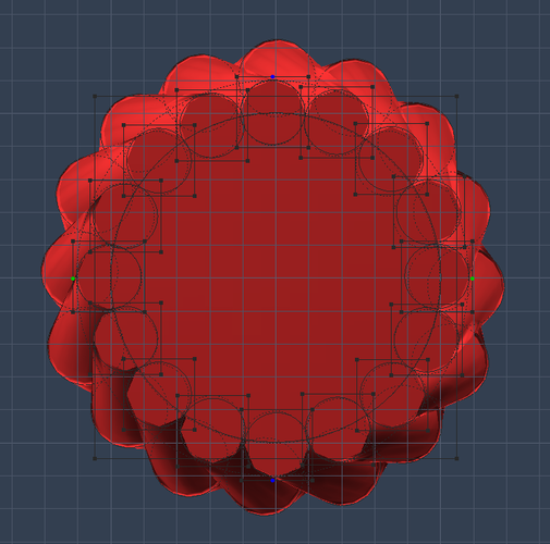 I did that one with a center circle and a bunch of smaller ones arranged around it. I then created two more cross-sections, for a total of three. I then went to the middle cross-section and selected all the shapes, went to the Arrange menu and chose rotate. I believe I rotated it 45º. I then went to the last cross-section and rotated that 45º.
