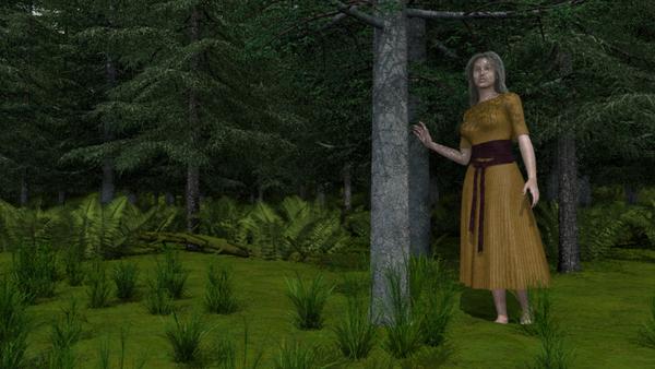 My image bothered me, cause the cloak was just swaying way too much, so I took down the scene forces to pulsate between .1 and 0, and did another cloth sim and re-rendered. I want the effect to be subtle enough so that at first blush it looks like a still render, but there's super-subtle movement. Closer this time, but I still think everything is moving too much and not subtle enough, also I put some wind into the tree in the far background. I'll probably end up redoing it one more time; originally I was going to do the animation in Octane and composite in the Carrara hair, but actually the Carrara native looks ok to me, so might stick with just the native. Never enough time... And I need to get hopping on the 'Fast' challenge if I'm going to get an animation done by week's end...