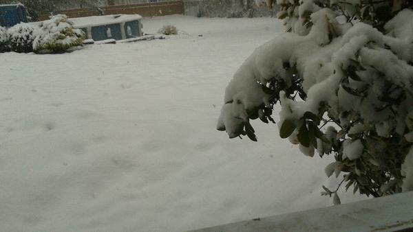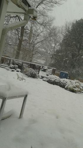 snow still coming down. holly bush outside looking droopy and depressed.