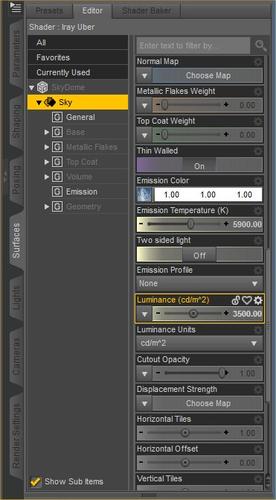 But in the first try, setting the map, doesn`t chance anything. Just after deleting the Emitter Shader the Sky is shown in the rendered Image but now it is really dark and not clear