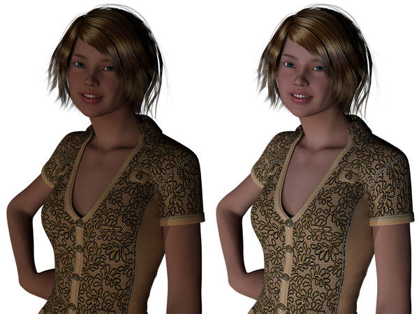 I started experimenting with the shaders, and applied the G2F shader to my model and did a render. Ugh. She looked really plastic. I now know I needed to apply the Iray Uber Base first, thanks to one of several posts by Sickleyield. (http://sickleyield.deviantart.com/journal/Tutorial-Getting-Started-With-Iray-519725115 Part 2. Loading Items And Converting Shaders)