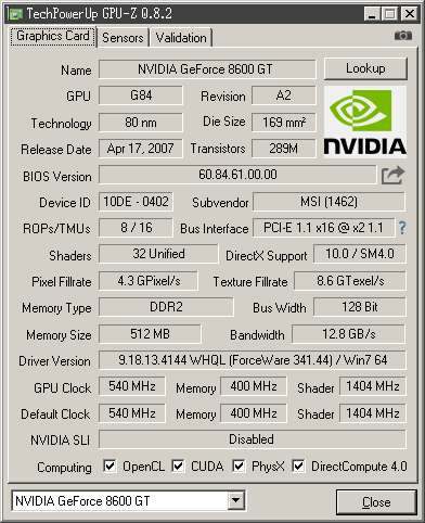 Skiriki, Only 125mb? I guess the View-field dose consume quite a bit of Vram. Now I was wrong about something, If I read that correct, them cores are lounging around at 1400MHz, not 540MHz. Perhaps it is not as week as I had thought it was, lol. Still the ram is such, that the cores will never get to see any of my scenes.