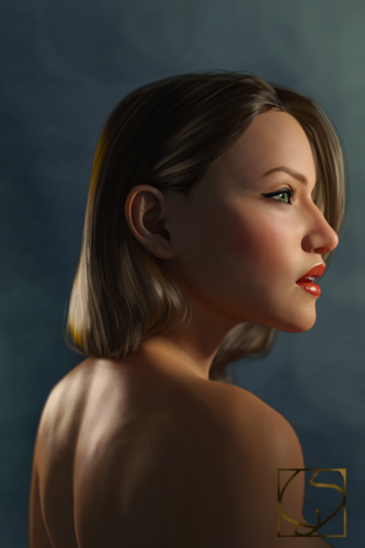 Very pretty. I love the look of the skin on her back, the way the light reflects off of it.
