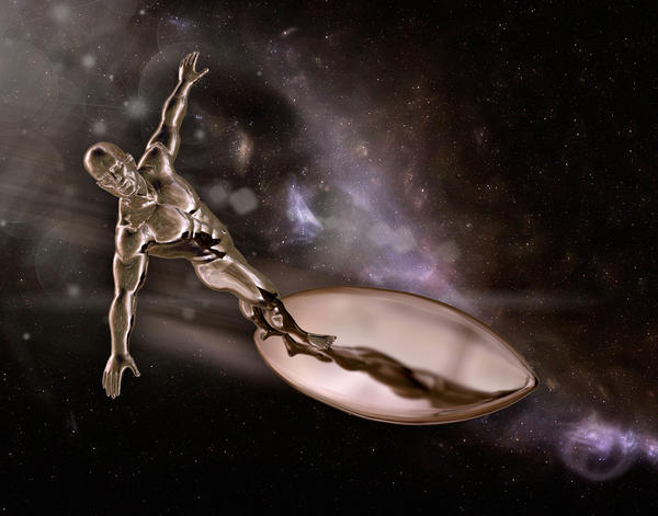 The Silver Surfer (I know the board isn't right) is done with and HDRI map and Iray settings on the subject. Postwork on the motionblurr.
