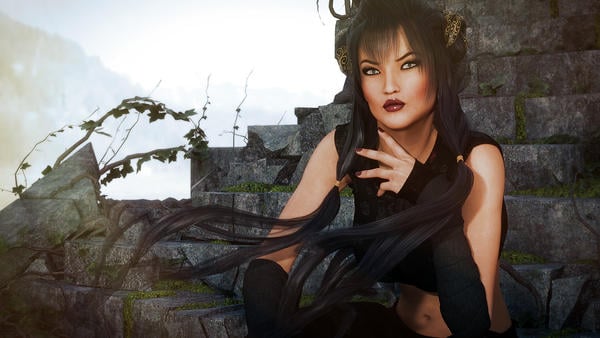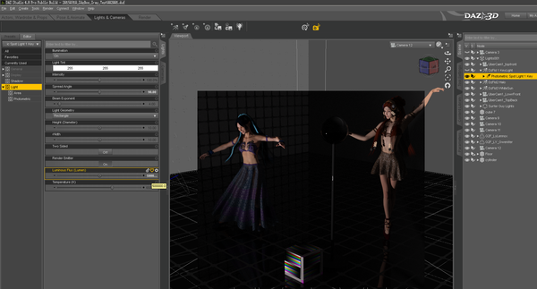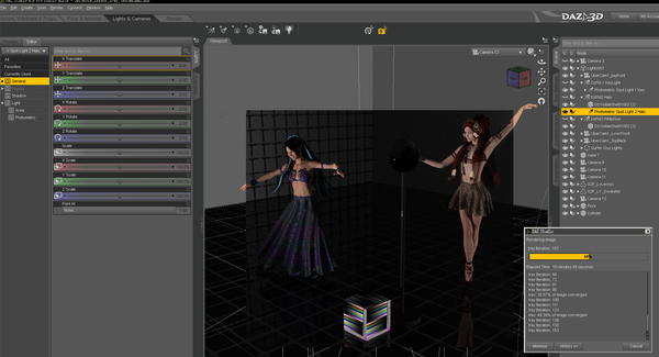 All the lighting is mesh, All the other shaders including the skin are translated by Iray from DS. This is all cpu render, my laptop doesn't have a graphics card (I7 Intel chipset). Took about 2 hours to render.