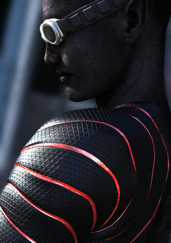 Here is a little test. I am rather satisfied with the outcome, and yeah, I know, very grainy still but as I said, this is a test with rather low settings. The skin looks promising, especially since dark grey skin is quite something, also for 3Delight. For his arm I went for a matte surface and I like how it reacts to the sun light. His glasses / the lenses were set to glass, no idea why they look so dull here, maybe it is the angle. :-)