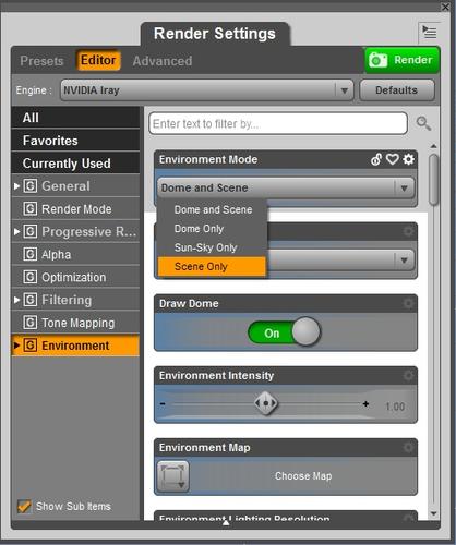 * Of the four Environment Modes, do any offer the option of Scene lights -and- Sun/Sky?