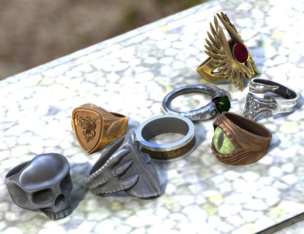Whether merely one simple band, perhaps with an inset gem, or a different ring on every finger, these eight rings will add grace and attitude to the hands of their bearers!