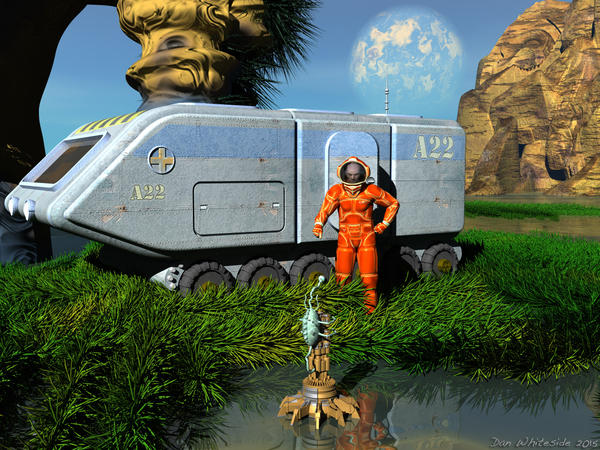 Vehicle and creature objects created in Modo (while recovering from hernia surgery) and textured with images from CGTextures and CG Garage.