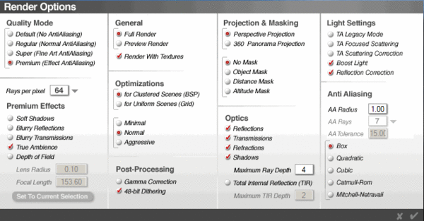 TA in Bryce 7 is completely different and works on Diffuse. There is no difference in the materials setup whether you use TA or not. TA is the Bryce version of radiosity and it works great and much faster than the old TA. The Render Options look different in Bryce 7.1.
